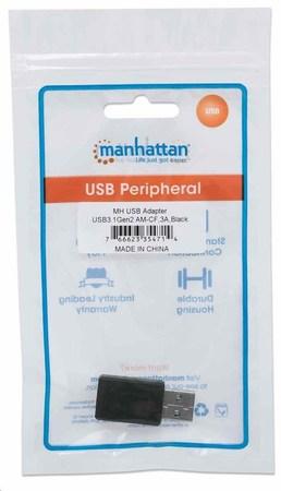 Manhattan USB adaptér, USB 3.1 Gen 2, USB-A Male na USB-C Female, 10 Gbps, černá