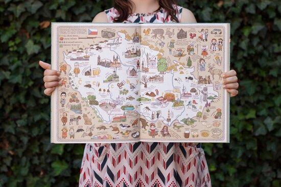 Obrázkové putování po 42 zemích a 6 kontinentech na 51 dvoustranách s nádherně zdobenými okraji, které připomínají mapy dávných objevitelů a mořeplavců.