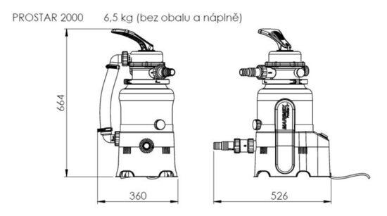 - Filtrační systém pískové filtrace ProStar 2000 se skládá z filtrační nádoby, do které se vejde 10 kg filtračního písku. Nádoba je vyrobena z vysoce kvalitního polypropylenu (PP). Odolává korozi a běžně dostupným chemikáliím používaných v bazénech.
