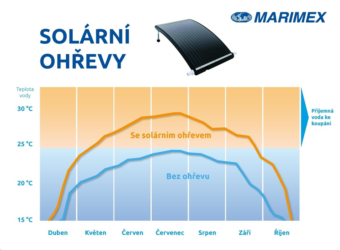 Dopřejte si luxus příjemně teplé vody na koupání i bez použití elektrického ohřevu. Díky slunci a solárnímu ohřevu Slim 3000 získáte rychleji teplou vodu na koupání s nulovými náklady za ohřev. Solární ohřev Slim 3000 kombinuje černé absorbční plasty o celkové ploše 0,7 m2 s krycím průhledným PVC, které vytváří skleníkový efekt a ještě lépe pomáhá zužitkovat sluneční energii.