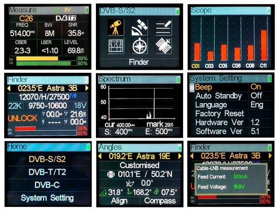 Kompaktní měřicí přístroj pro měření DVB-S/S2/T/T2/C signálu s barevným LCD displejem, kompasem a anglickým menu. Navíc je vybaven zvukovou signalizací. Akumulátor přístroje podporuje rychlonabíjení.