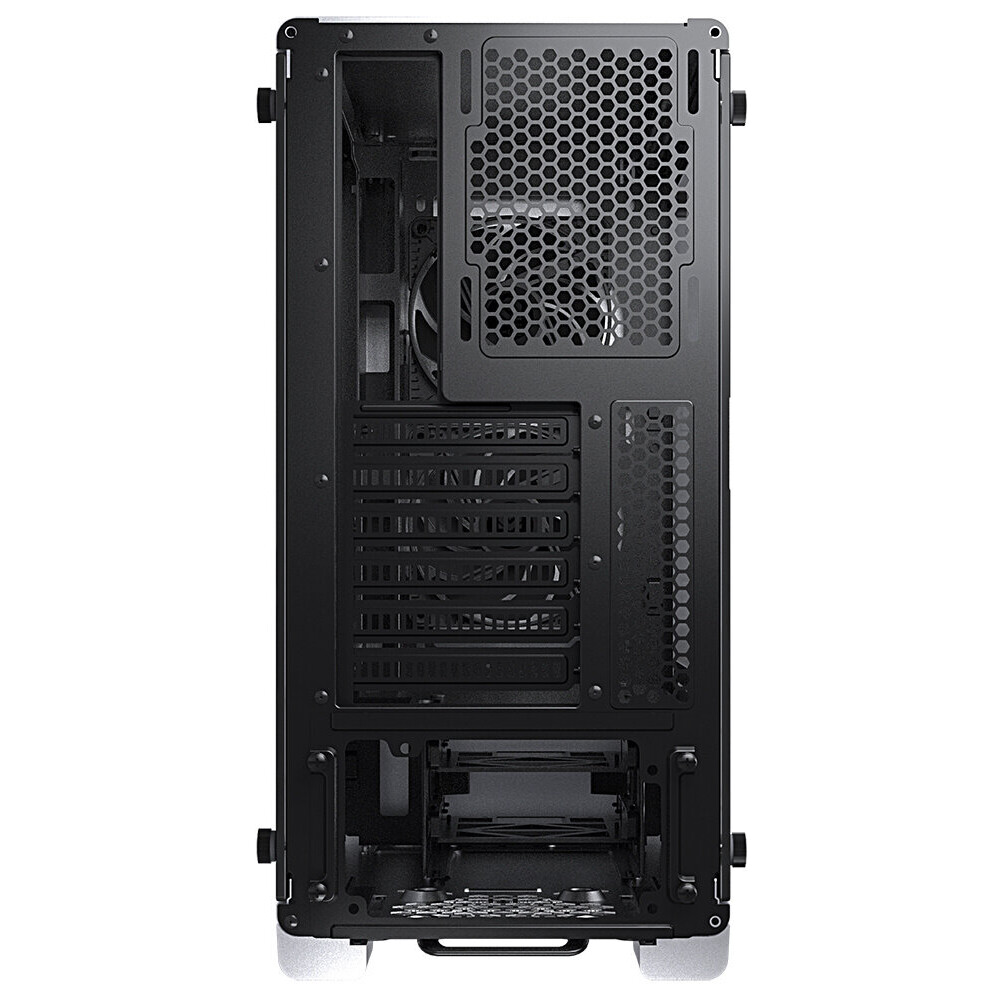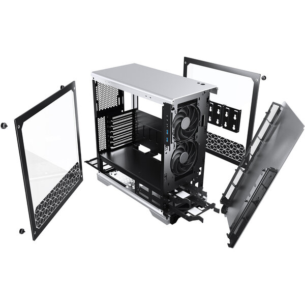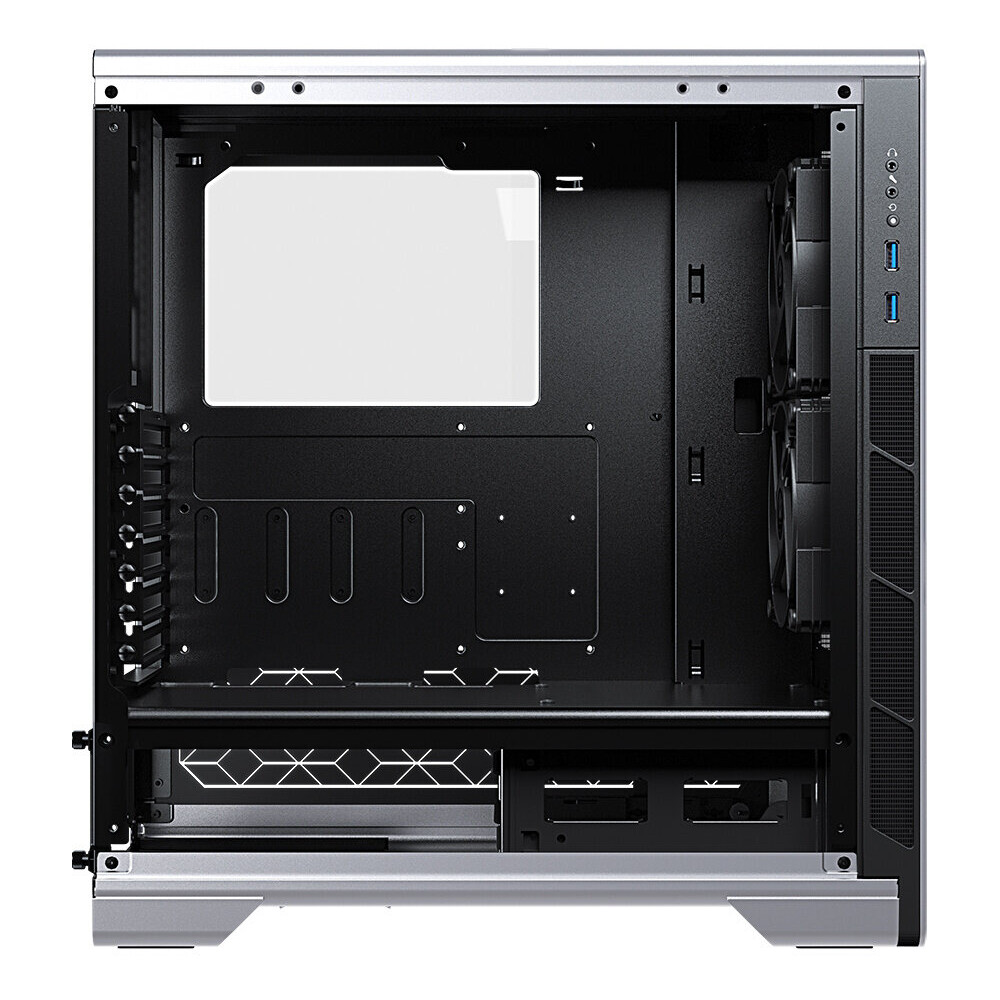 Skříň formátu Middle Tower nabízí dvě 2,5" pozice pro SSD disky a dvě 3,5" pozice pro pevné disky. Na bočním panelu se nachází dva USB 3.0 porty, sluchátkový výstup a audio vstup pro mikrofon. Na přední straně je vybavena dvěma 120 mm ventilátory a umožňuje pohodlné umístění až 280 mm dlouhého výměníku vodního chlazení. RGB podsvícení spolu s průhlednými bočnicemi z tvrzeného skla zajišťuje vytříbený design. Ve skříni je dostatek prostoru pro chladič CPU do výšky až 170 mm a grafickou kartu o délce až 320 mm. Skříň je dodávána bez zdroje. Součástí je také sada prachových filtrů.