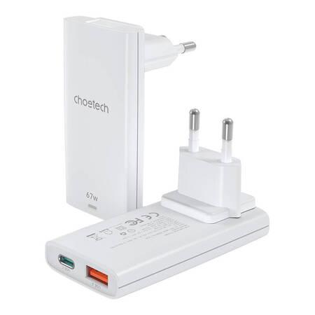 Choetech PD6011 PD65W GaN slim USB-A+C network charger (white)