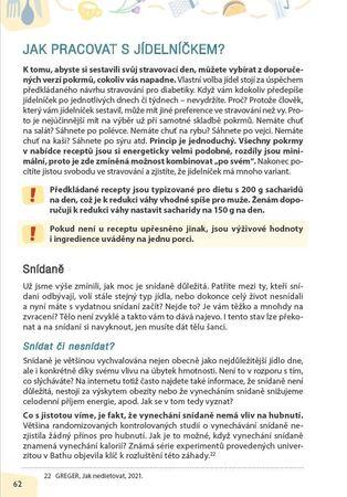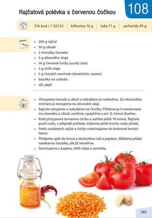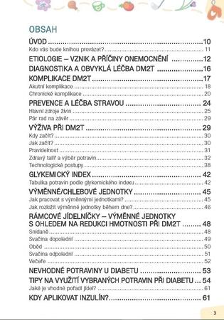 Kromě praktických informací o diabetu, výživě a roli cukru, práci s výměnnými jednotkami, nejvhodnějších postupech přípravy pokrmů apod. kniha přináší návodné tabulky pro sestavení vlastního jídelníčku a přes 130 pestrých receptů na snídaně, svačiny, obědy i večeře. To vše servírováno s lákavými fotografiemi a přehlednou grafikou.