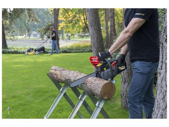 Získejte šikovného pomocníka a usnadněte si řezání větví, menších stromů nebo přípravu polen a palivového dříví. Motorová pila Powerplus POWEG2010 má výkonný dvoutaktní motor o objemu 37,2 cm³, který se chladí vzduchem. Motorová pila je vybavená 35cm vodicí lištou a kvalitním řetězem. Díky kompaktním rozměrům a nízké hmotnosti se vám bude dobře držet a snadno používá. Páka brzdy řetězu a chránič ruky vás během práce chrání a nabízí větší bezpečí. Řetězová pila se hodí pro použití na menších zahradách.