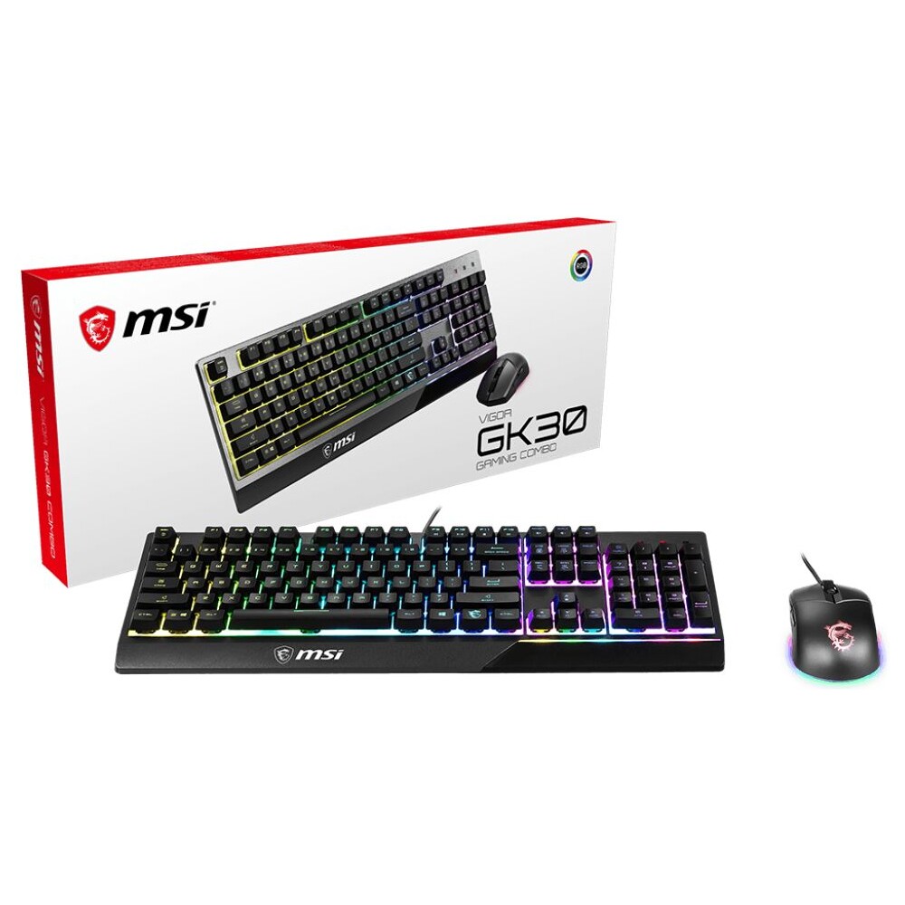 MSI Vigor GK30 COMBO Herní drátový set klávesnice Vigor GK30 a myši CLUTCH GM11. Designová herní klávesnice disponuje speciálními spínači, které se chovají jako mechanické. Potěší také přítomnost RGB podsvícení či funkce Anti-Ghosting. Připojení k počítači je realizováno skrze USB konektor. ...