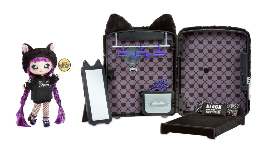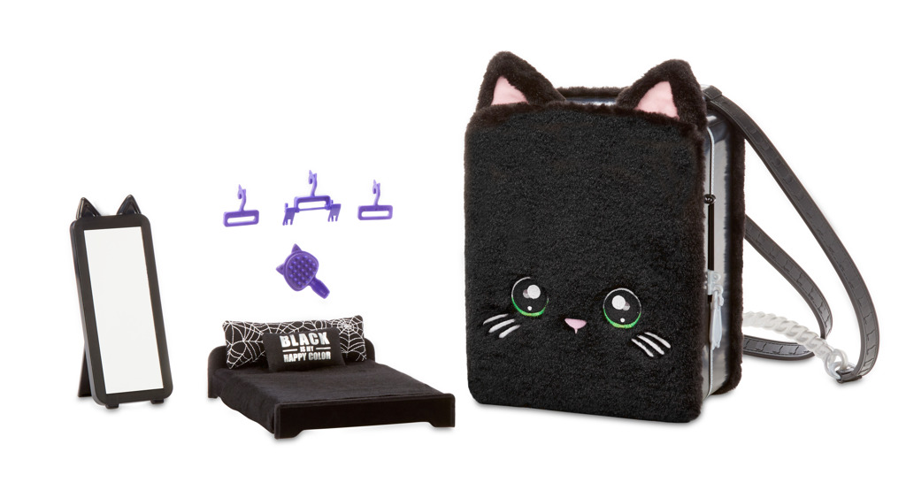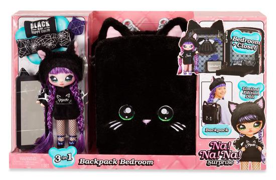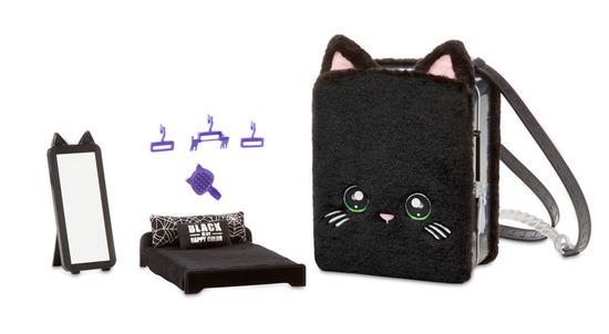 Plyšový Batoh s pokojíčkem ve zvířecím tvaru obsahuje exkluzivní panenku a útulný pokojíček s postýlkou, skříní, zrcadlem a spoustou dalšího. Batoh můžeš nosit na zádech a vybrat si ho v podobě černé kočky nebo růžového králíčka.