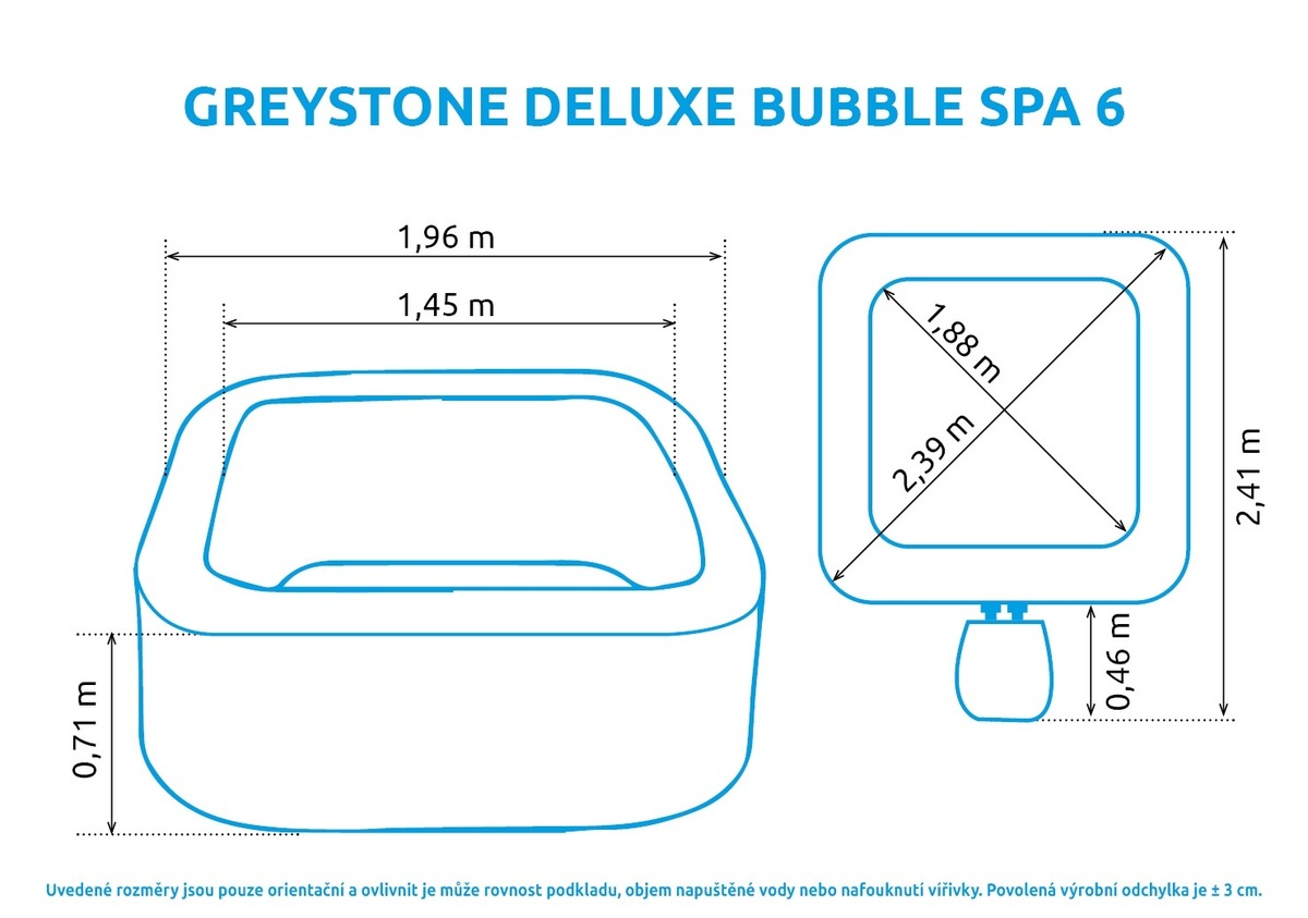 Instalace vířivého bazénu je jednoduchá. Najdete pro něj rovné místo a nafouknete vířivku elektrickou pumpou (není součástí balení). Přibližně do 10 minut máte bazén připravený a můžete relaxovat.