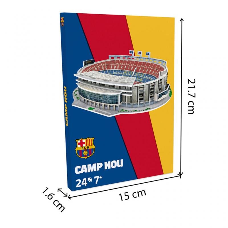 Postavte si jeden z největších stadionů na světě! Camp Nou je jeden z největších stadionů na světě a domácím týmem je zde slavná FC Barcelona. Všechny dílky do sebe jednoduše zapadají a jsou očíslované, což usnadňuje stavbu. Nepotřebujete lepidlo ani jiné nástroje. Stadiony Nanostad jsou kvalitní a celosvětově úspěšné, protože je zábava je stavět s rodinou i s přáteli. U dětí podporují vynalézavost a trénují motoriku. Stadiony jsou vyrobeny z polystyrenové pěny, pokryty kvalitním foto papírem a prošly všemi důležitými mezinárodními testy hraček. NANOSTAD je značka vysoce kvalitních 3D puzzle, které jsou replikami světoznámých fotbalových stadionů. Rozměry: 17,2 x 13  x  4,2 cm. Vhodné pro děti od 7 let.