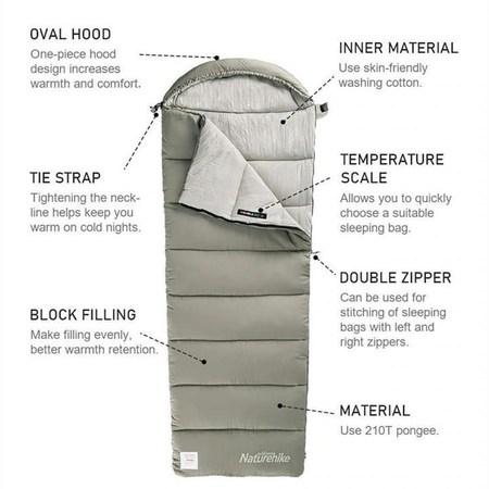 Tento spacák je pratelný a lze jej plně rozšířit.Je vyroben z tkaniny 210T. Podšívka je vyrobena z vysoce kvalitníomyvatelné bavlny. Lze jej spojit do dvojitého spacáku.