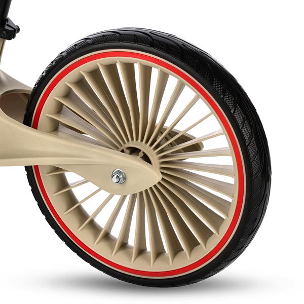 Tento model je vybaven 12" koly z odolného PU, která tlumí nerovnosti a zajišťují hladkou jízdu. Díky tomu je kolo vhodné na chodníky, cyklostezky i travnaté cesty v parku.