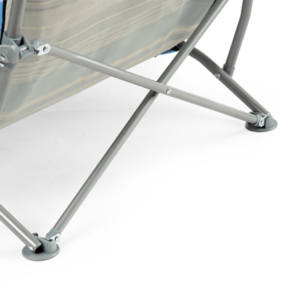 Loketní opěrky jsou opatřeny pěnovým návlekem pro maximální komfort během lenošení. Pro snadné přenášení lze křeslo složit a zabalit do dodávaného vaku.