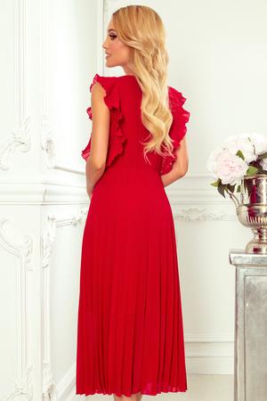 Numoco Plisované šaty s volánky a výstřihem EMILY - červené Velikost: XL, Červená