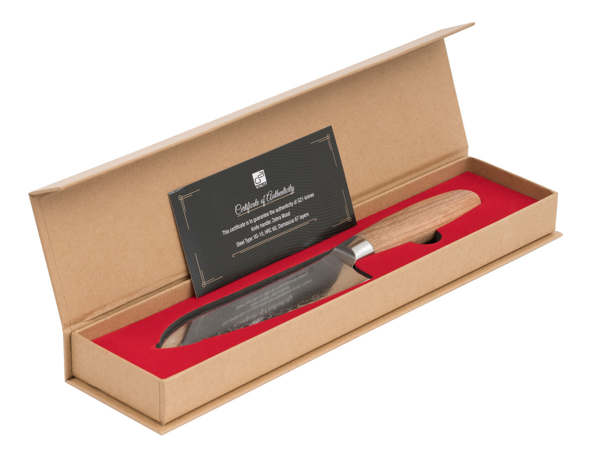 Čepel nože G21 Gourmet Damascus je vyrobena z kvalitní 67vrstvé damaškové oceli VG-10, která je velice odolná, má vysokou stabilitu a neuvěřitelně dlouhou životnost ostří. Vrstvená damascénská ocel se používala i k výrobě zbraní nebo mečů pro svou vysokou tvrdost a stálost.