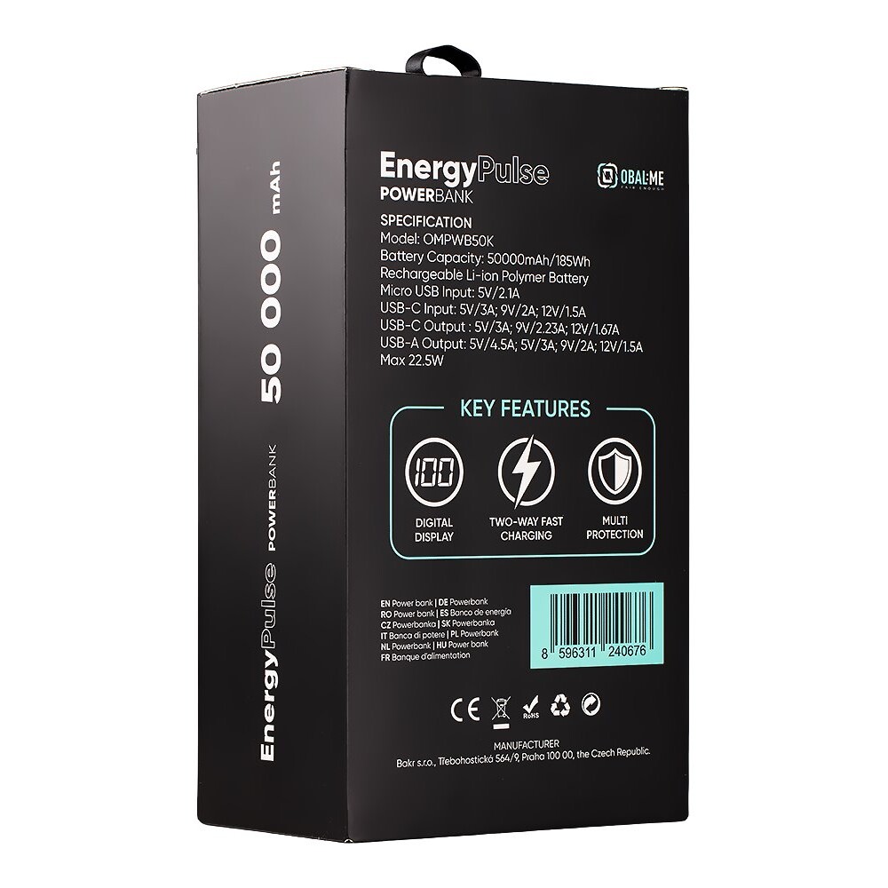 OBAL:ME EnergyPulse Powerbanka 50000mAh (22.5W) černá