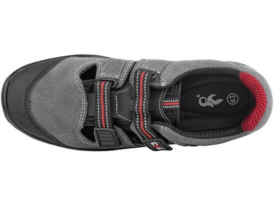 Pracovní sandál, kožený, perforovaný, zapínání na suchý zip s PVC reflexními pásky. Materiál: svršek z 1,6 - 1,8 mm kvalitní hovězí broušené kůže, bez kovových součástí, podšívka z prodyšné a oděru odolné textilie, podešev: PU-guma, protiskluzová, antistatická, olejivzdorná, odolná proti kontaktnímu teplu do 300 °C.