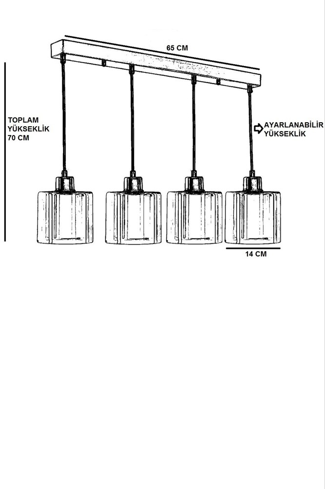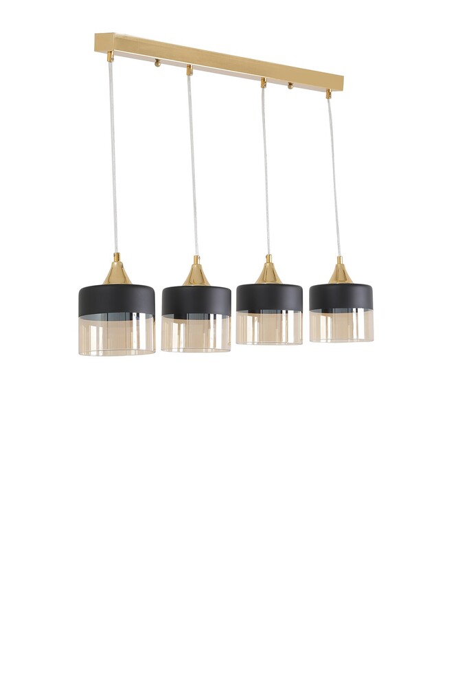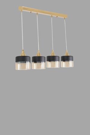 Opviq Chandelier Sahra 4 Lü Sıralı Gold Siyah Camlı Sarkıt Gold Black