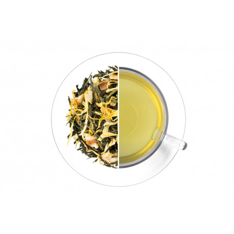 Japonský zelený čaj Sencha (78,7 %), citronová kůra, přírodní aroma, měsíček květ. Může obsahovat stopy skořápkových plodů.