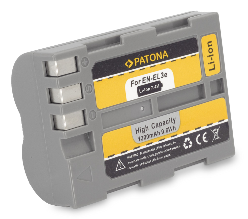 PATONA baterie kompatibilní s Nikon EN-EL3E; Kvalitní akumulátor pro vaši videokameru nebo digitální fotoaparát. ZÁKLADNÍ SPECIFIKACE; Kapacita: 1300 mAh; Technologie baterie...