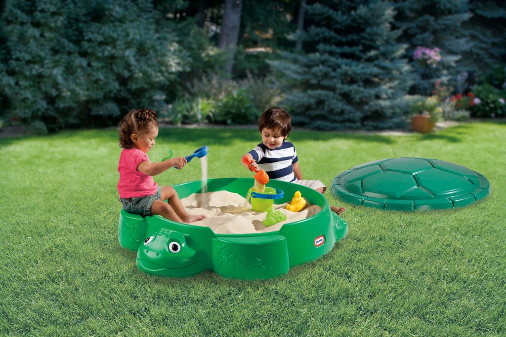 • Po stranách má pískoviště vylisovaná dvě sedátka – nohy želvy, sedátka se tak nikdy neztratí