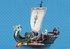 Loď plave na vodě. Součástí lodi je klec na draky a otočná vystřelovací kuše.