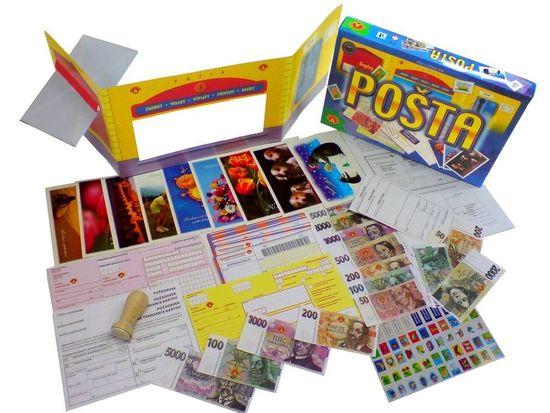 Celý poštovní úřad v jedné krabici! Kdo by se nechtěl stát alespoň na chvilku skutečným pošťákem nebo pošťačkou? S touto krabicí naplňenou vším potřebným (i klientskou přepážkou) se to vašim dětem splní. Rozlož poštovní přepážku, vyndej peníze, známky, obálky, složenky, podací lístky, pohlednice i razítko a hra může začít. Nevíš si rady s vyplněním složenky nebo adresy? Pomůžou Ti návody k jednotlivým formulářům. Na poště už se neztratíš! Pozvi kamarády ať si přijdou poslat dopisy, zaplatit složenku nebo vybrat peníze - zažijte spousty legrace! Balení obsahuje: Dřevěné razítko, rozkládací poštovní přepážku, barevné složenky, dopisní obálky, podací lístky, pohlednice, šeky na výběry a odeslání peněz, poštovní samolepící známky, 98ks českých bankovek, Český návod s ukázkami na vyplňování všech formulářů.
