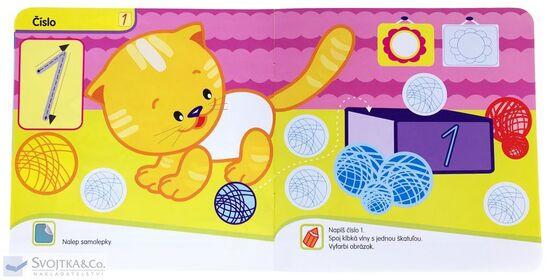 Pridaj sviečku na tortu a nezabudni priniesť na narodeninovú oslavu darček. Vráť zatúlané klbká do škatule. Spočítaj s myškou syry a pomôž kuriatkam nájsť cestu do kurníka. Tieto a mnohé ďalšie úlohy nájdete v tejto knižke, ktorá je určená pre najmenšie deti. Hravou formou si tu precvičia ruku pri vyfarbovaní, a navyše sa naučia písať prvé čísla. Pri plnení jednoduchých aktivít deti zistia, že sú veľmi šikovné, a precvičia si postreh pri výbere a nalepovaní samolepiek.