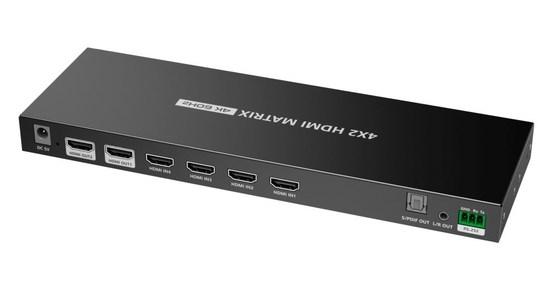 Umožní propojit více zdrojů signálu, 4 vstupy HDMI na 2 výstupy HDMI.