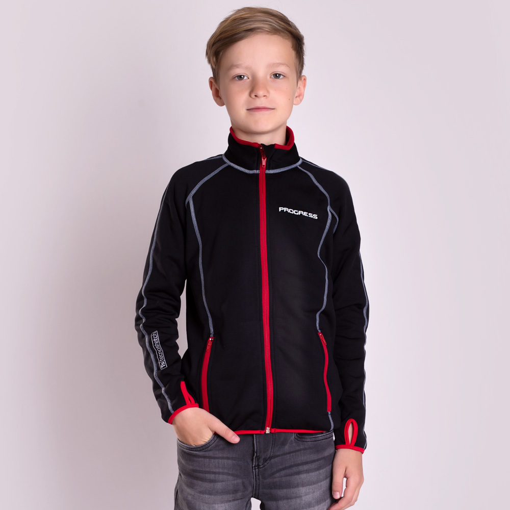 PROGRESS TOREZ JUNIOR chlapecká funkční mikina 164/1 černá/červená