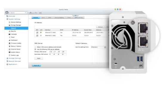 TS-231P2 podporuje více režimů slučování portů, čímž IT administrátorům umožňuje nakonfigurovat agregaci odkazů pro zvýšení potenciálu celkové datové propustnosti. Podporován je i failover a duální adresy IP, aby byl zajištěn nepřetržitý provoz systému. K podporovaným režimům slučování portů patří následující: Balance-rr (Round-Robin), Active Backup, Balance XOR, Broadcast, IEEE 802.3ad, Balance-tlb (adaptivní vyvažování přenosové zátěže) a Balance-alb (adaptivní vyvažování zátěže).