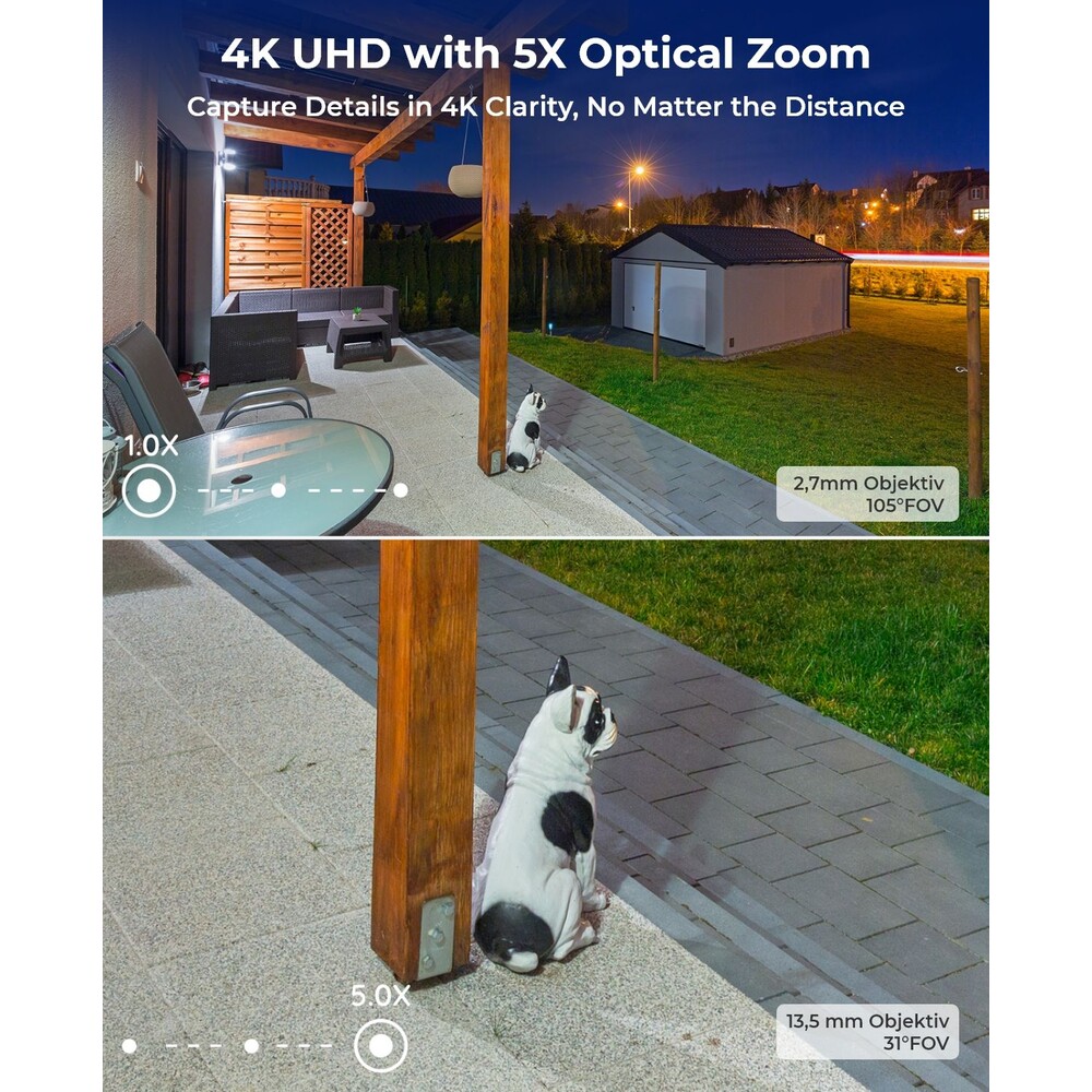 Wi-FI 4K 8MP Ultra HD bezpečnostní kamera, 5x optický zoom, detekce osob/automobilů/zvířat