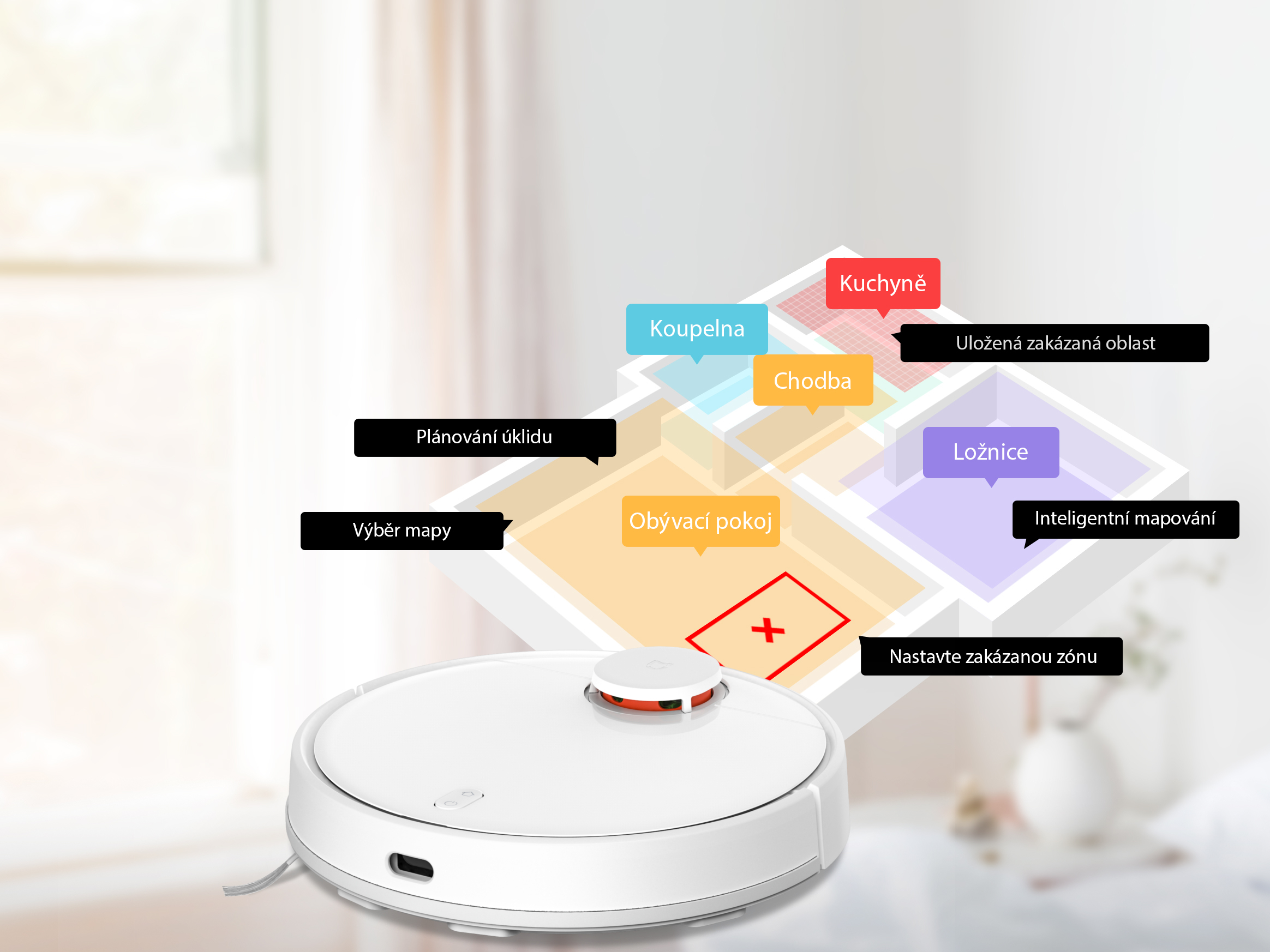 - Pro každou místnost nebo její část můžete nastavit jiný čas vysávání