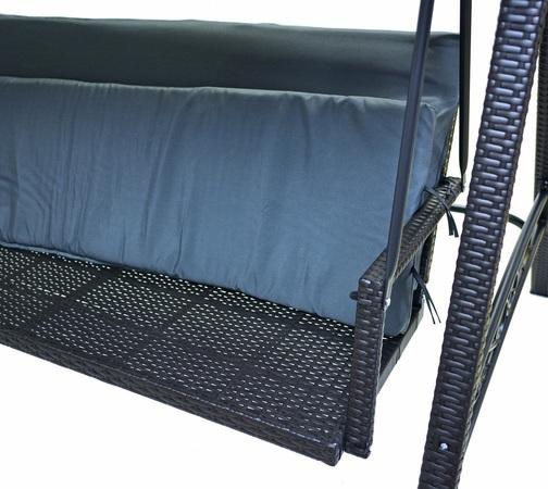 Zahradní houpačka s kovovou konstrukcí a umělým ratanem. Součástí je i pohodlná poduška v šedé barvě. Umělý ratan vyniká svou odolností proti UV záření, je bezúdržbový a velice lehký. Umělý ratan se vyrábí z polyethylenu, což zajišťuje větší pevnost, stálobarevnost a celkovou životnost materiálu. ...