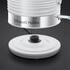 Kapacita 1,7 litru, 2 400 W, 1 šálek vody za 55 sekund, ukazatel množství vody, odnímatelný omyvatelný filtr proti vodnímu kameni, 360° kruhová základna s prostorem pro skladování kabelu, modře podsvícený přepínač pro zapnutí/vypnutí, bílá barva