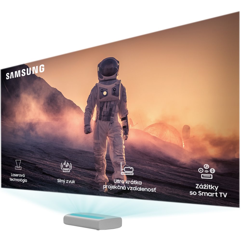 Projektor, světelný výstup 2 800 lumenů, 3840 × 2160 px, DVB-T/T2/S2 (H.265/HEVC), HDR 10 Plus, kontrastní poměr 1 500 : 1, úhlopříčka promítaného obrazu 100 až 130 palců, 3× HDMI, USB, LAN, digitální audio výstup, vstup RF, zvuk 40 W, Wi-Fi, Bluetooth 4.2, max. hlučnost 32 dB, dálkové ovládání, ...