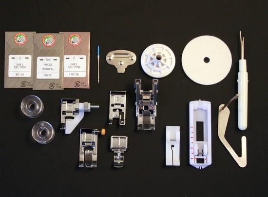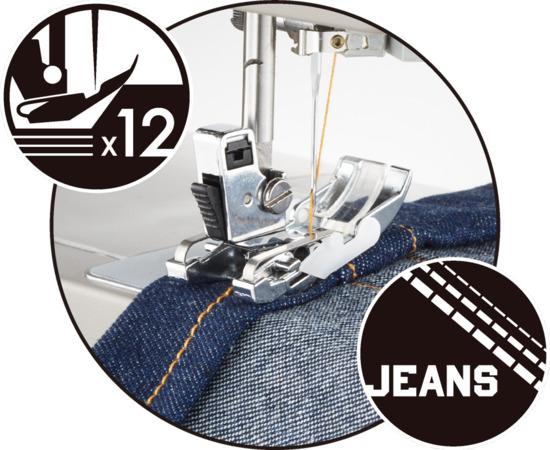 17 pečlivě vybraných nejpoužívanějších stehů, z toho 2 pružné a 2 dekorativní, vestavěný navlékač a odřez nitě.