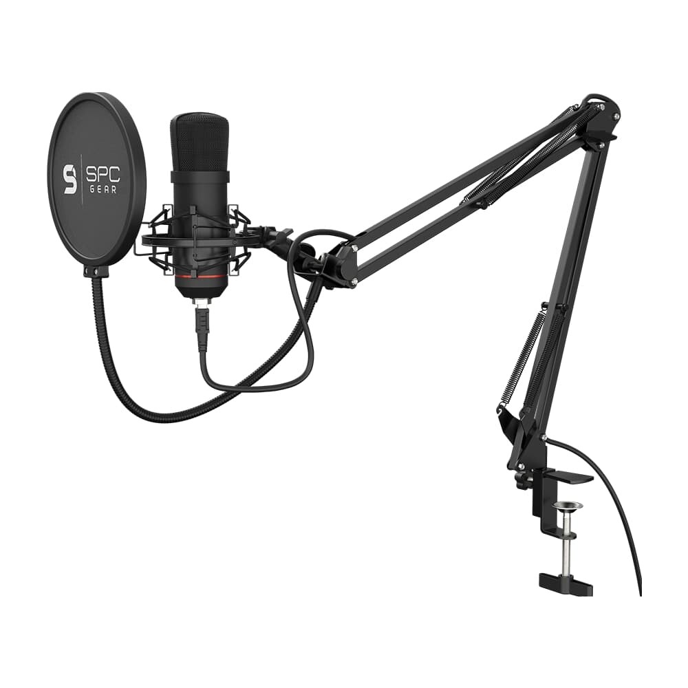 SPC Gear SM900 Kvalitní mikrofon s kardioidní charakteristikou disponuje nastavitelným ramenem pro ideální polohu při streamování. Nabízí jednoduchou a pevnou montáž pomocí šroubu ke stolní desce. Součástí balení je pop filtr, vysoce kvalitní držák pro