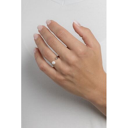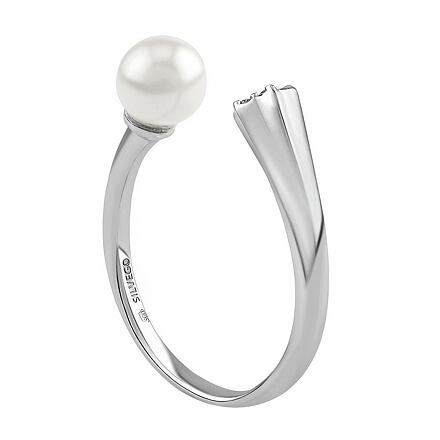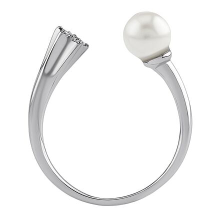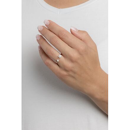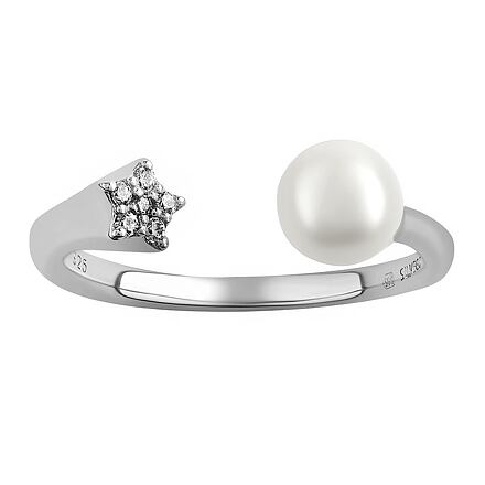 Silvego Otevřený stříbrný prsten Star s perlou a Brilliance Zirconia velikost obvod 55 mm