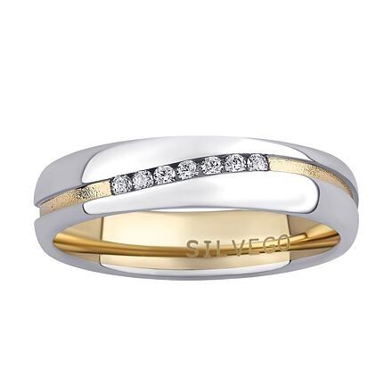 Silvego Snubní stříbrný prsten MARIAGE pozlacený žlutým zlatem s Brilliance Zirconia velikost obvod 61 mm