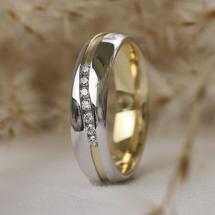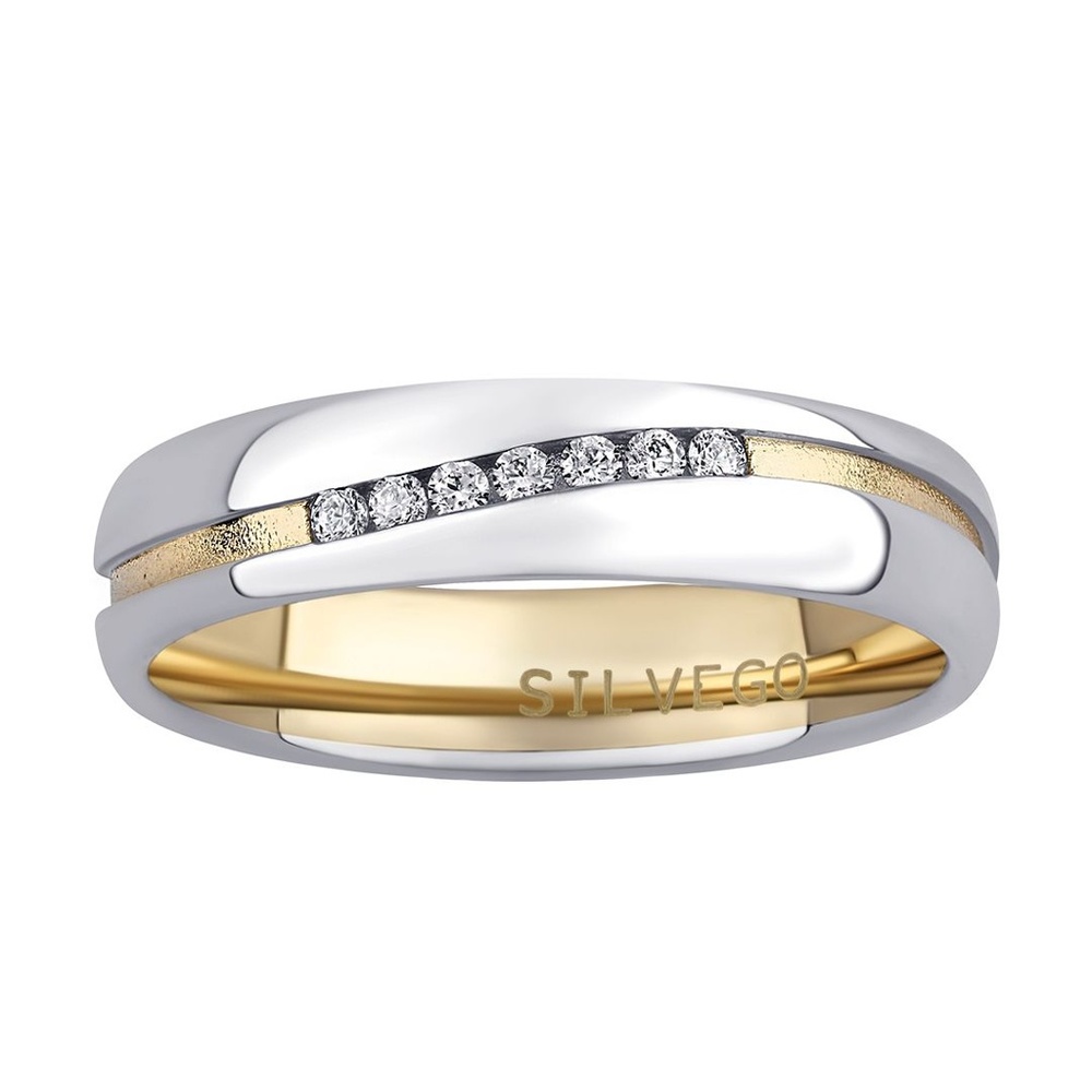 Snubní stříbrný prsten MARIAGE je z části pozlacený žlutým zlatem se SILVEGO(R) Brilliance Zirconia. Prsten je vhodný pro ženy. Prsten zdobí pozlacená vlnící linka se sedmi čirými zirkony uprostřed prstenu. Vygravírujte si váš výjimečný den! Materiál: Stříbro 925/1000 Rhodiovaný povrch - vysoký lesk, vzhled bílého zlata, šperk je odolný vůči oxidaci (nečerná) a je hypoalergenní (mohou ho nosit i lidé s alergií na stříbro), zlacení žlutým zlatem Šíře prstenu je 5 mm. Vnitřní část prstenu je zaoblena což vám zaručuje pohodlné nošení.