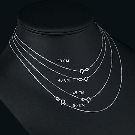 Stříbrný řetízek v lesklém provedení je vhodný pro ženy i muže. Působí velmi jemným, decentním dojmem. Je vhodný pro přívěsky s rhodiováním. Délku lze vybrat z více možností.