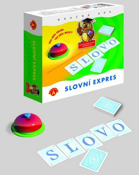 Slovní expres je napínavá slovní hra, ve které musí hráči zapojit všímavost, postřeh a slovní zásobu. Jenom ten, kdo nejrychleji sestaví slovo z písmen na kartách, a jako první bouchne do zvonku, získá odměnu. Hra udržuje vysoké herní napětí, ale je také výborným tréninkem postřehu, vnímání, kreativity myšlení a hlavně správného pravopisu. Balení obsahuje: 55 karet s písmeny zvonek návod. Počet hráčů: 2-4. Hra je vhodná pro děti od 8 let.