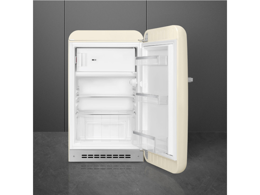 50's Style, automatic defrost, barva krémová, panty napravo, vnitřní mrazák, LED-vnitřní osvětlení, celková kapacita 122 l, en.třída E, 37 db(A)/C