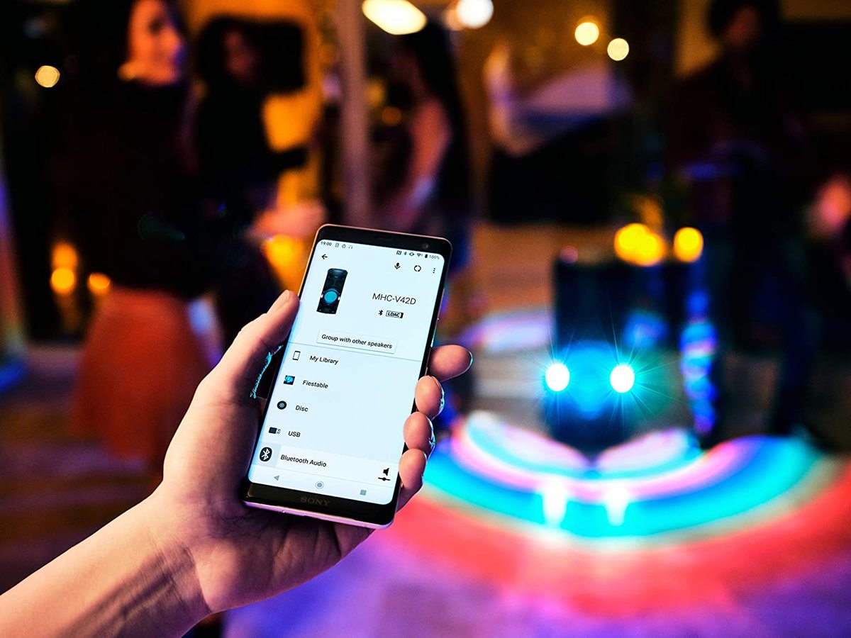 S audiosystémem MHC-V42D můžete s přáteli spárovat současně až tři smartphony pomocí technologie Bluetooth®. Všichni budete moci přehrávat skladby ze všech svých hudebních knihoven a budete tak mít ještě větší výběr.