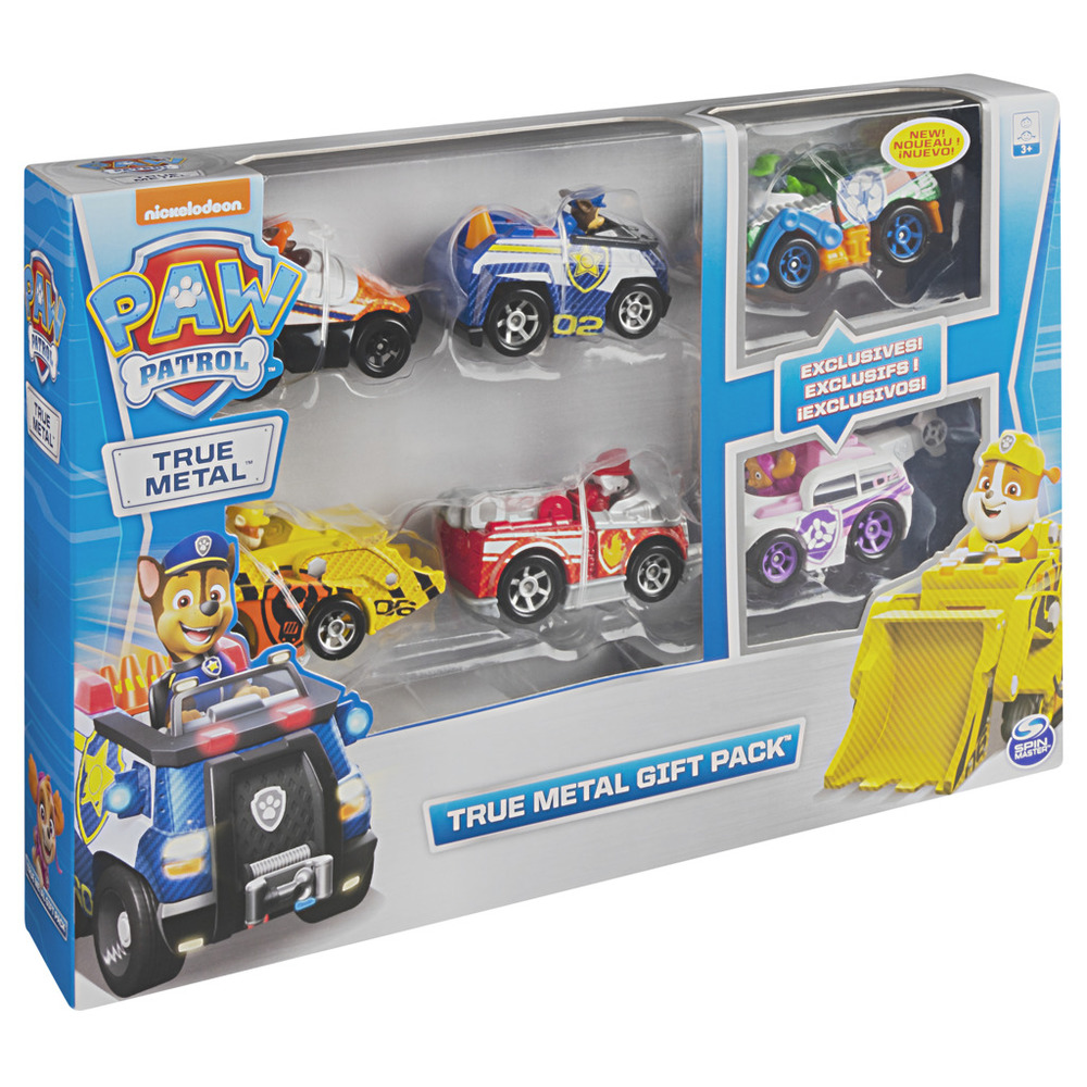 Nová vozidla Tlapková patrola True Metal v dárkové sadě 6ks. Tyto úžasné kovové modely v měřítku 1:55 vypadají přesně jako ty, které znáte z vašeho oblíbeného televizního seriálu. Díky mnoha detailům a grafice, opravdovým kolům a kovovým prvkům jsou tyto stroje připraveny na rychlou záchranu. Za volantem každého z nich sedí postavička s ušima vlajícíma ve větru. V této dárkové sadě naleznete exkluzivní vozidla. Vozidla Tlapková patrola True Metal jsou skvělým dárkem pro všechny děti starší 3 let. Sada obsahuje: 6 vozidel Tlapková patrola True Metal