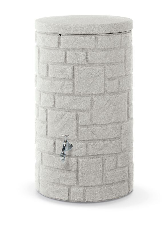 Sud na dešťovou vodu s objemem 230 l. Design reálné kamenné zdi. Možnost přidání kohoutku nebo spojky pro zahradní hadici. Horní otvor s víkem. Rozměry (š x v x h): 60 x 105 x 60 cm