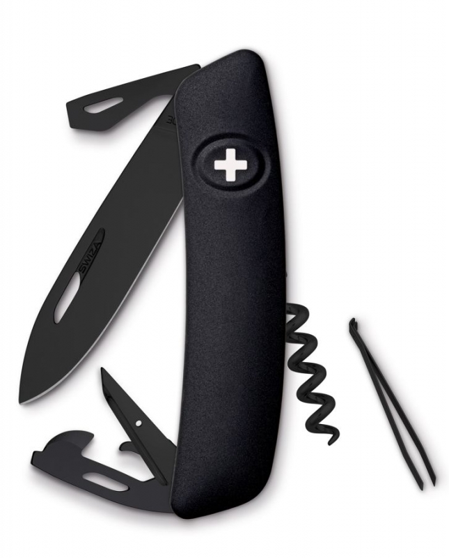 Swiza D03 Allblack je autentický švýcarský kapesní nůž pocházející z obnovené výroby ve známé továrně v Delémontu, hlavním a největším městě kantonu Jura.