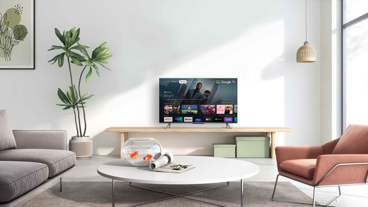 Televize Google TV, QLED, 109cm, 4K Ultra HD, PPI 3100 (50Hz), Direct LED, HDR10, HLG, Dolby Vision, lokální stmívání, DVB-T2/S2/C, H.265/HEVC, 2× HDMI, 1× USB, LAN, WiFi, Bluetooth, DLNA, Chromecast, Miracast, HbbTV 2.0, herní režim, hlasové ovládání, Netflix, HBO Max, Apple TV, Voyo, Steam Link, ...