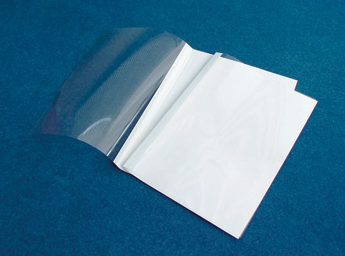 Praktické vázací termodesky ve formátu A4 pojmou 33 až 45 listů. Na jejich přední straně je transparentní fólie a na zadní straně lesklý bílý karton.