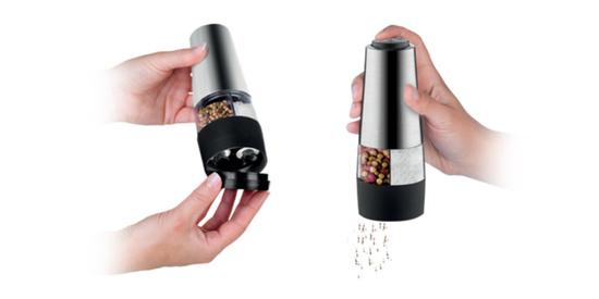 Elektrický mlýnek pro čerstvě mletý pepř a sůl. Se 2 prvotřídními keramickými mlecími mechanismy, s nastavitelnou hrubostí mletí a víčkem pro zachytávání zbytků koření, které slouží také jako násypka pro snadné plnění. Vyrobeno z kvalitní nerezavějící oceli a odolného plastu, opatřeno výkonným motorem. 6 tužkových AAA baterií 1.5 V není součástí balení. Návod k použití uvnitř. 5 roků záruka.